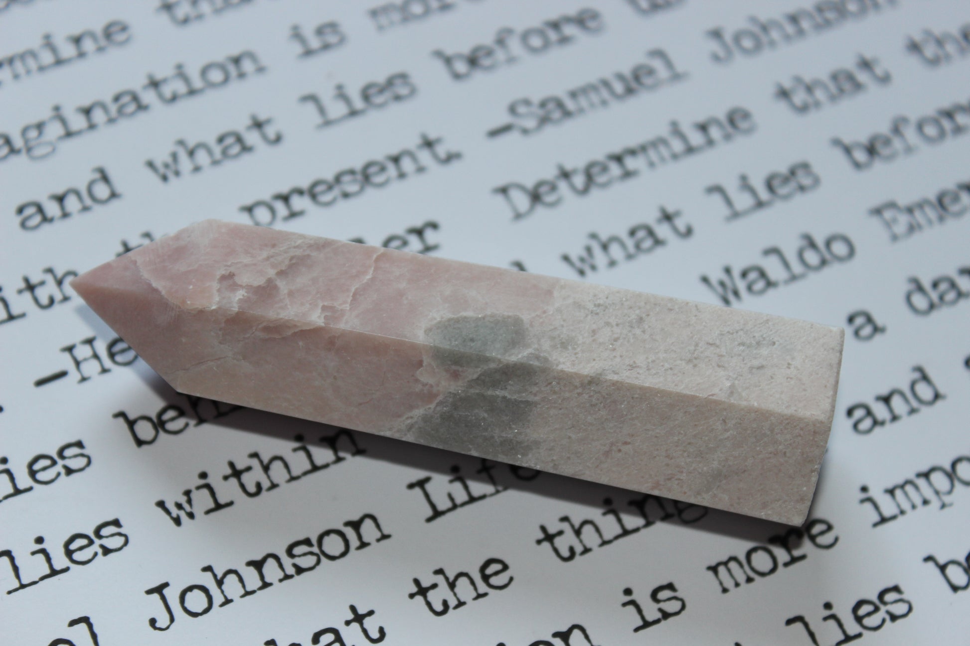 Soft as dusk-stained vellum and radiant with the hush of tenderness, this Pink Opal tower captures the fragility and strength of healing love. Its pale rose tones seem to carry lullabies once written between the lines of ancient devotions, where gentleness was sacred and grief was given space to exhale.